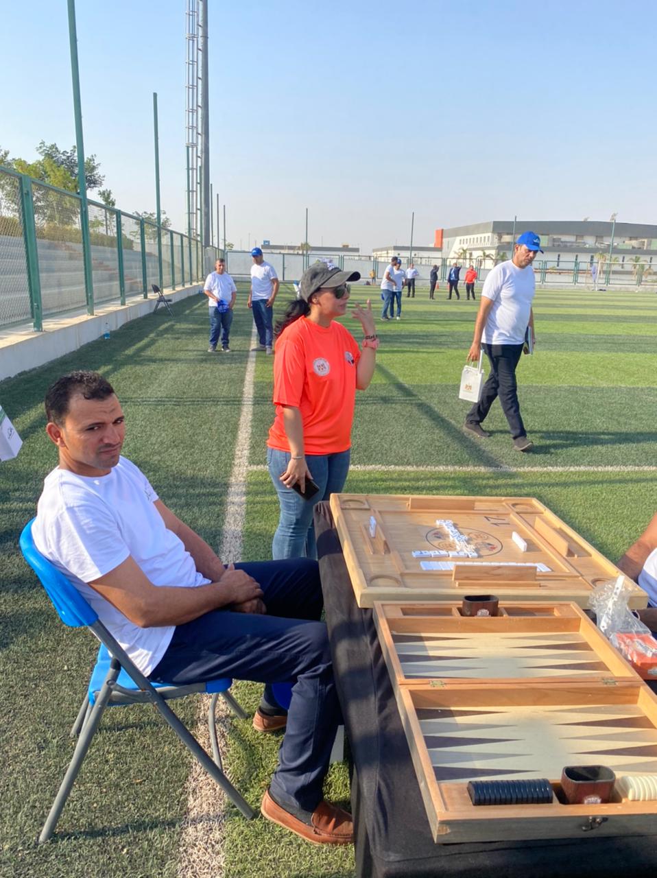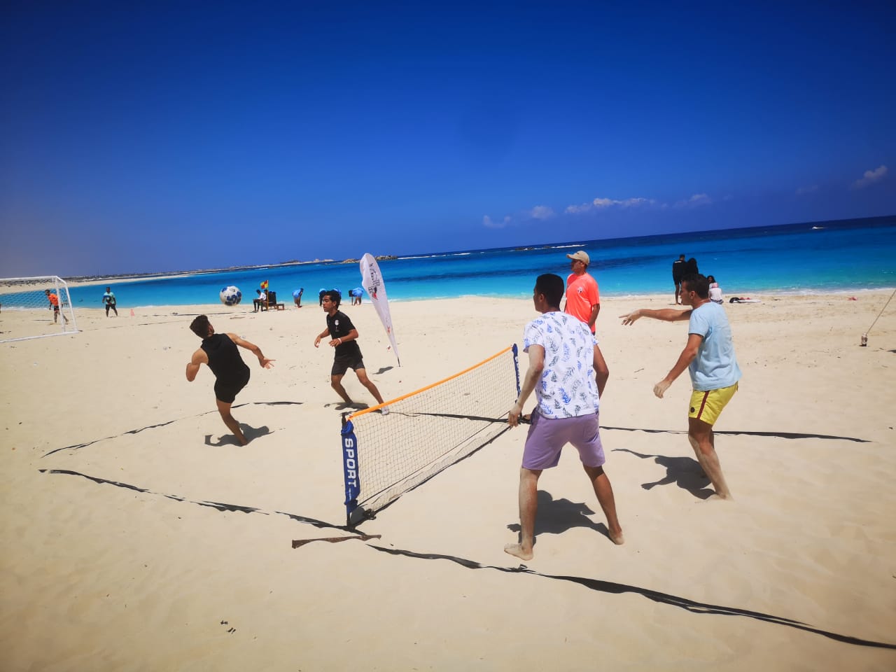 وتابع: اللعبة الثانية الدومينو أمريكاني، وعادة يتكون الفريق من 1 أو 2 أو 4، والثالثة فوت فولى footvolley، وفي هذه اللعبة يتكون الملعب من شبكة في المنتصف وممنوع لمس الكورة باليد، أو تلامسها للأرض الفريق مكون من 2 أو 3.