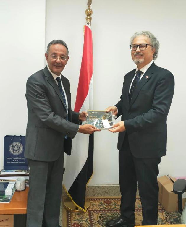 وأعرب السفير عن سعادته لما وصل إليه المتحف القومي للحضارة المصرية من تقدم ورقي في مجال حفظ ودراسة وترميم الآثار، كما حرص الدكتور أحمد غنيم على تقديم هدية تذكاريه له.