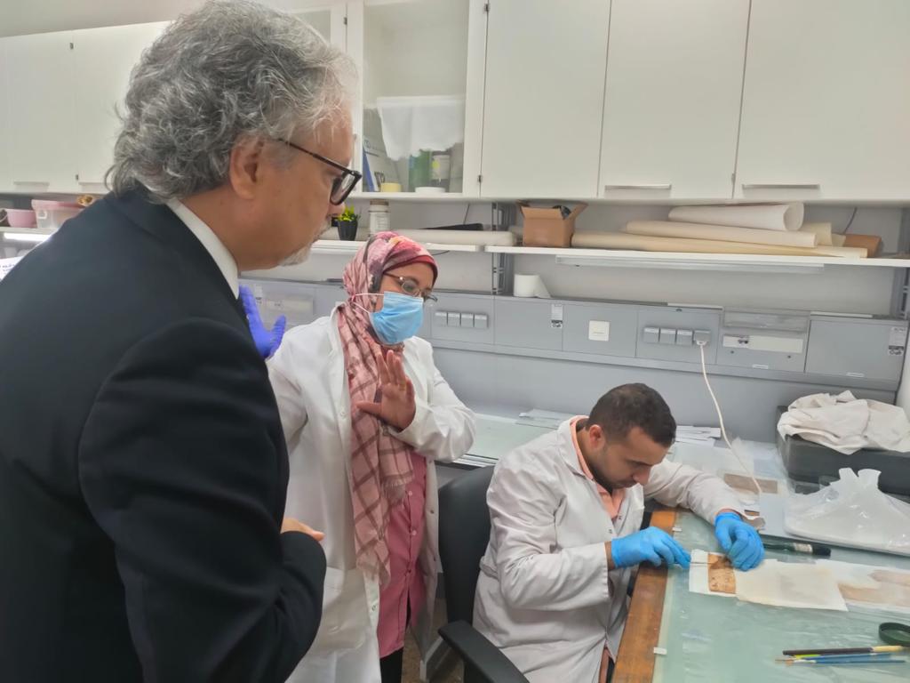 كما اصطحبهم غنيم؛ في جولة تعريفية داخل معامل الترميم والصيانة بالمتحف، حيث قدّم لهم شرحًا تفصيليًا عن كيفية التعامل مع القطع الأثرية وطرق علاجها وترميمها، وسُبل المحافظة عليها من العوامل الجوية، وأحدث ما توصلت إليه تكنولوجيا التعامل مع القطع الأثرية وآخر الدراسات العالمية التي تشهد بها المؤسسات العلمية الكبرى.