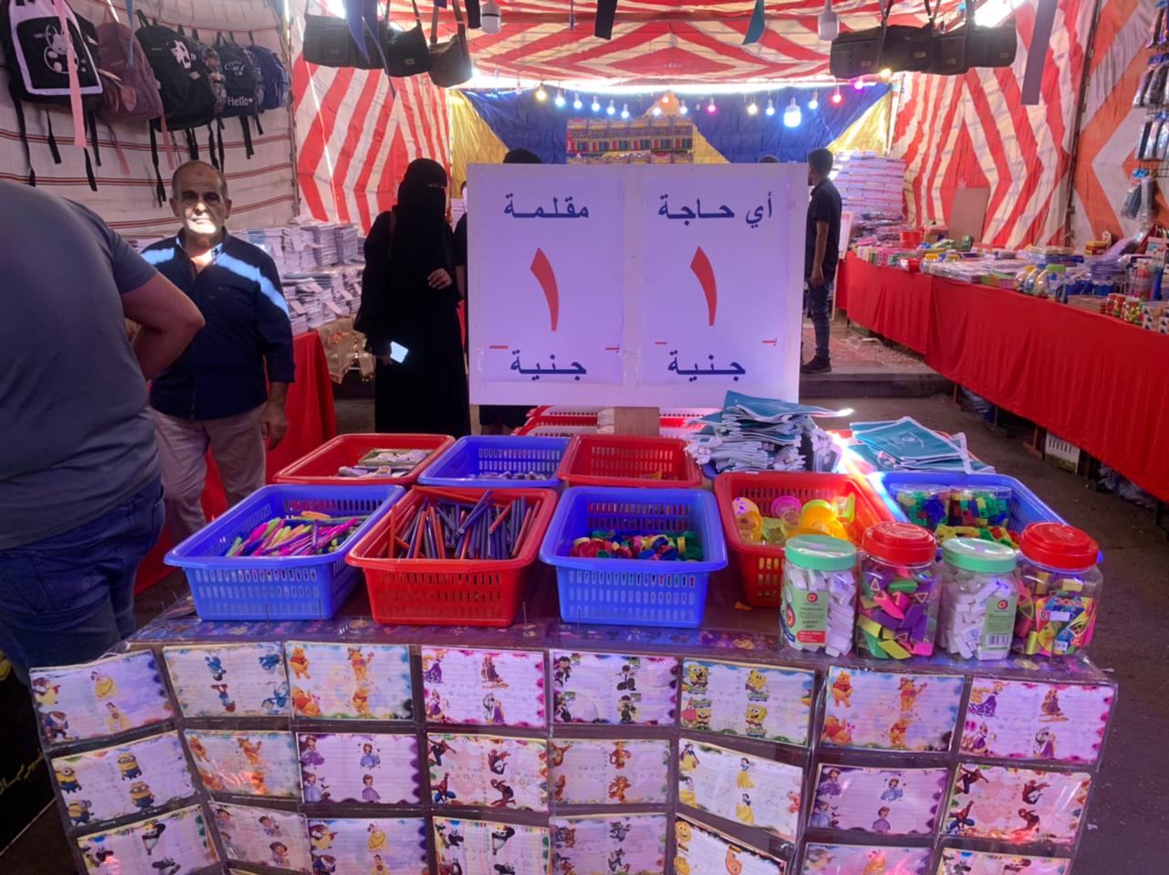 يقدم المعرض مجموعة كبيرة من الأقلام الجاف بسعر 1.5 جنيه بدلًا عن 2.5، ويقدم القلم الرصاص بسعر جنيه واحد بدلًا عن 2، ويقدم المحاية والبراية بـ جنيه، ويقدم الكشكول الـ 60 بـ 5 جنيهات بدلًا عن 7.5، ويقدم خصم 50% على الألوان والأقلام الألوان.