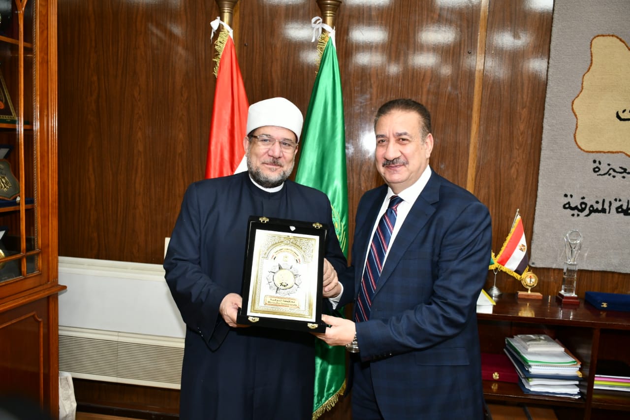محافظ المنوفية يُهدي درع لوزير الأوقاف تقديرًا لجهوده في عمارة المساجد
