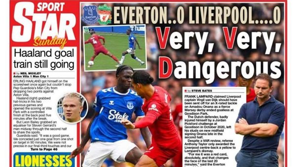 قالت ستار سبورت في غلافها إن هالاند يبدو عليه مواصلة مرانه بالتهديف بعدما هز شباك أستون فيلا في المباراة التي انتهت بالتعادل الإيجابي، بهدف لمثله.