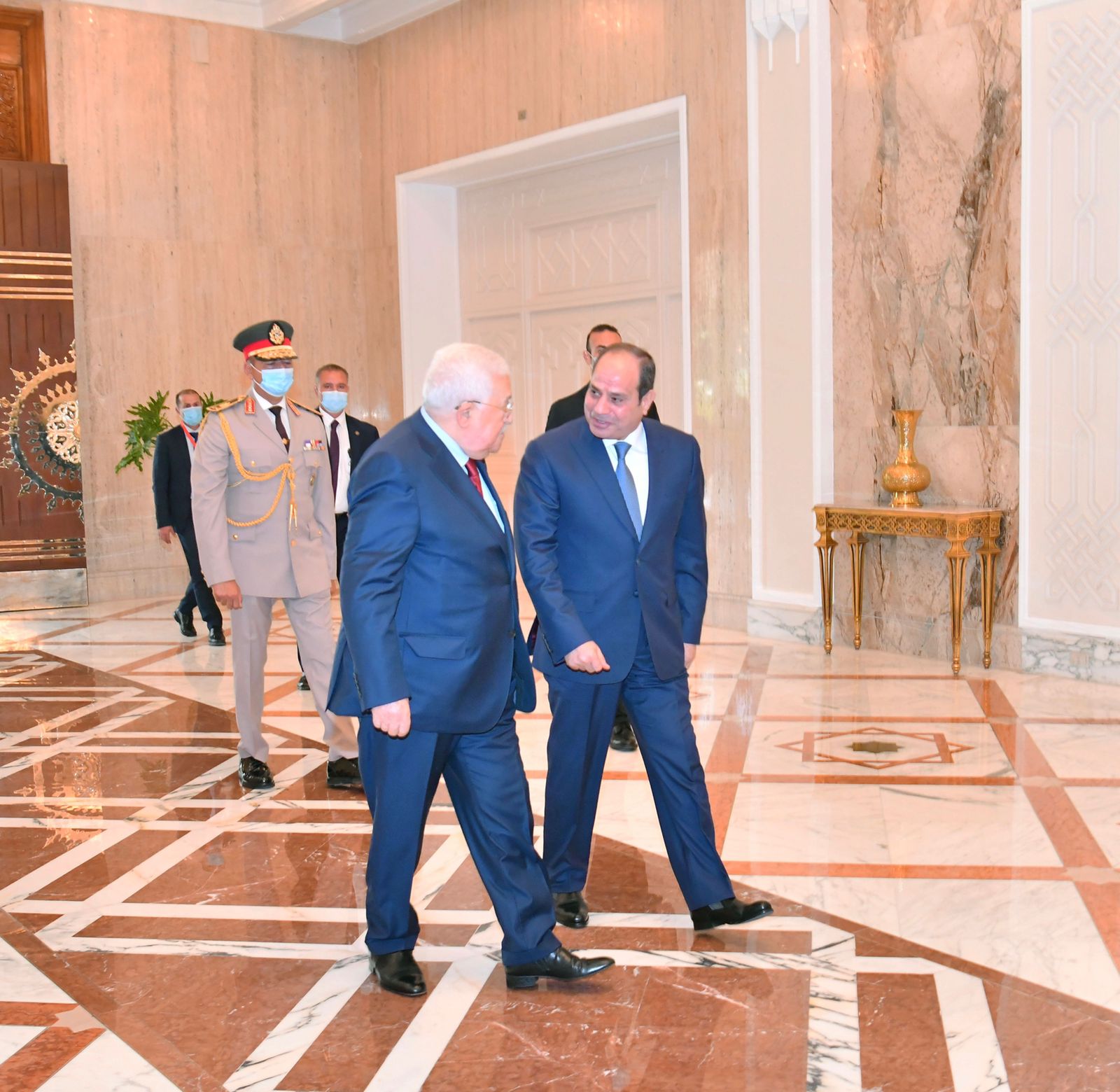 استقبل الرئيس عبد الفتاح السيسي، رئيس الجمهورية، اليوم الثلاثاء، بقصر الاتحادية الرئيس الفلسطيني محمود عباس أبو مازن، وذلك بحضور اللواء عباس كامل رئيس المخابرات العامة، إلى جانب الدكتور رياض المالكي وزير الخارجية الفلسطيني، وحسين الشيخ أمير سر اللجنة التنفيذية لمنظمة التحرير الفلسطينية، واللواء ماجد فرج رئيس المخابرات العامة الفلسطيني، والسفير دياب اللوح السفير الفلسطيني بالقاهرة.