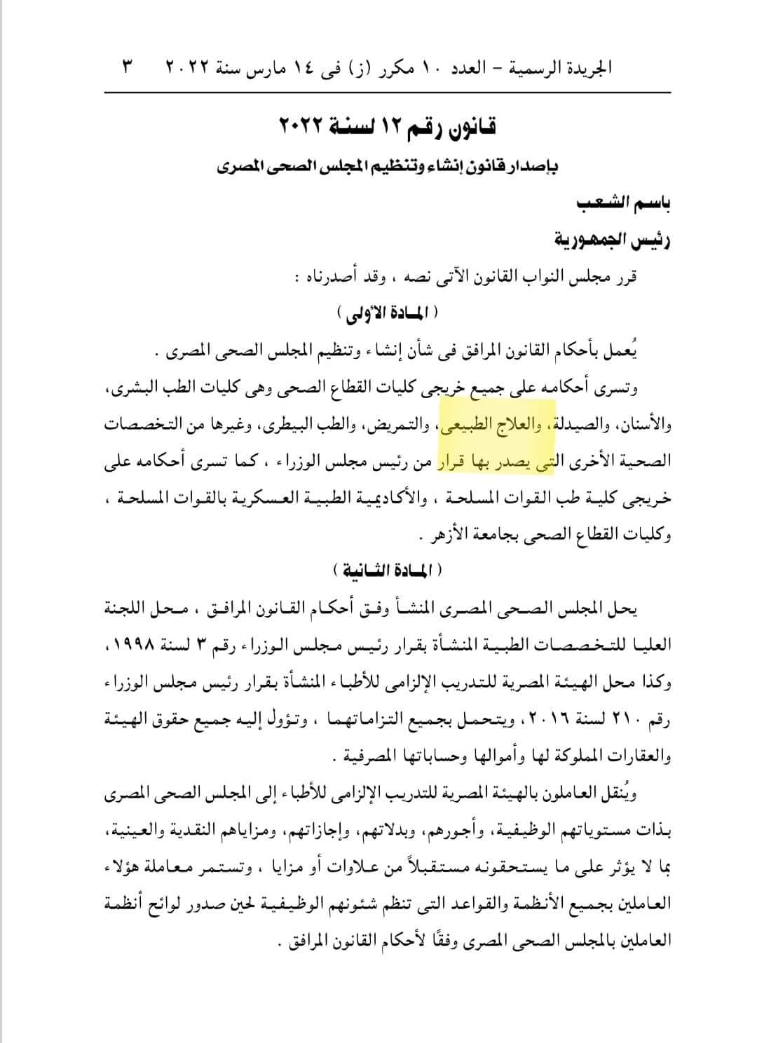 أعلنت النقابة العامة للعلاج الطبيعي، أنه لن يتم قيد دفعة امتياز 2022، دون اختبار قومي لترخيص مزاولة المهنة، وفقا للقانون الصادر من المجلس الصحي المصري.