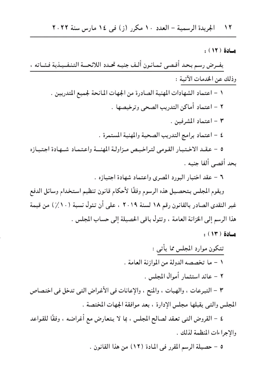 وأضاف أن الاختبار القومي لترخيص مزاولة المهنة جاء بحسب نص المادة 12 الفقرة 5 من قانون رقم 12لسنة 2022 الخاص بإصدار قانون إنشاء وتنظيم المجلس الصحي المصري، حيث إن قيمة الامتحان تبلغ بحد أقصى 2000 جنيه.
