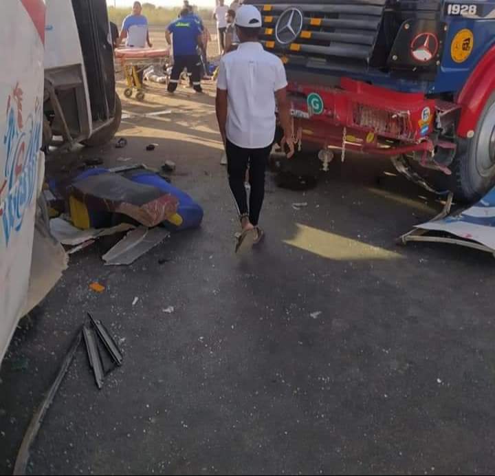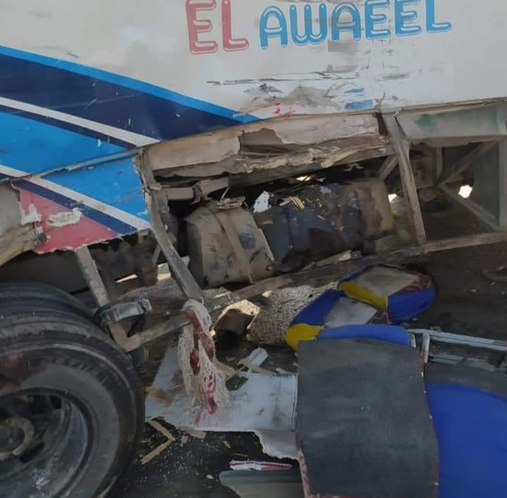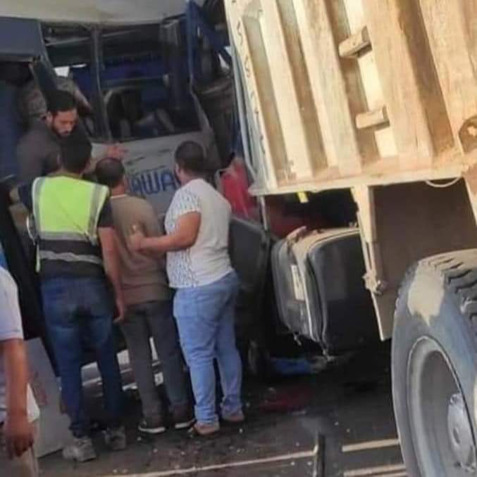 إصابة 25 شخصًا فى حادث تصادم أتوبيس عمال وسيارة نقل بطريق السويس العين السخنة| صور