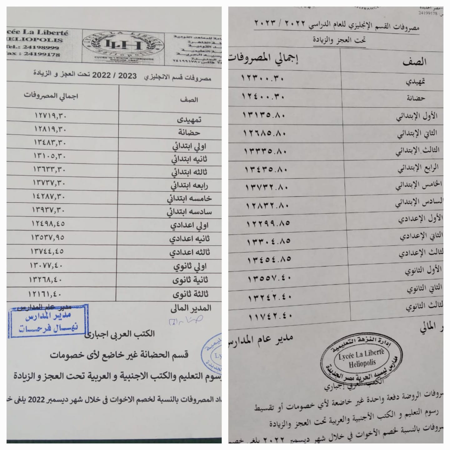 استغاث عدد من أولياء أمور مدرسة ليسيه الحرية التابعة لإدارة النزهة التعليمية بمحافظة القاهرة، من رفض إدارة المدرسة تقسيط المصروفات على دفعات، على الرغم من إتاحة وزارة التربية والتعليم سداد أولياء الأمور للمصروفات المدرسية على أقساط.