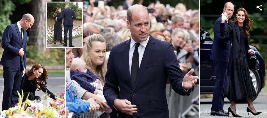تسلطت الأضواء الخميس على الأمير ويليام وزوجته الأميرة كيت، اللذين خرجا إلى الشوارع لمشاركة الشعب في الأحزان.