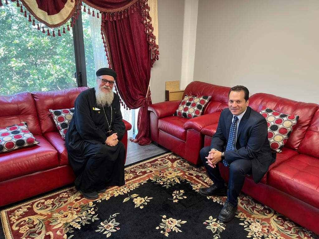 النائب رامي جلال يلتقي راعي كنيسة المقر البابوي بولاية نيوچيرسي الأمريكية