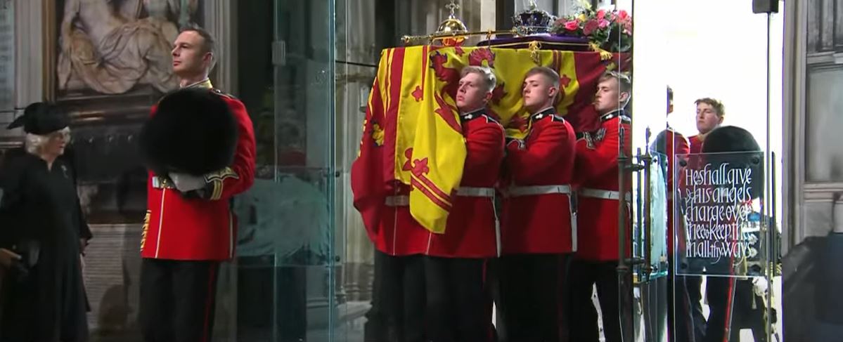 وشهدت بريطانيا، مراسم نقل جثمان الملكة إليزابيث الثانية إلى كاتدرائية ويستمنستر آبي من أجل الصلاة على روح الملكة وعزف الموسيقى ضمن مراسم الجنازة.