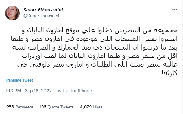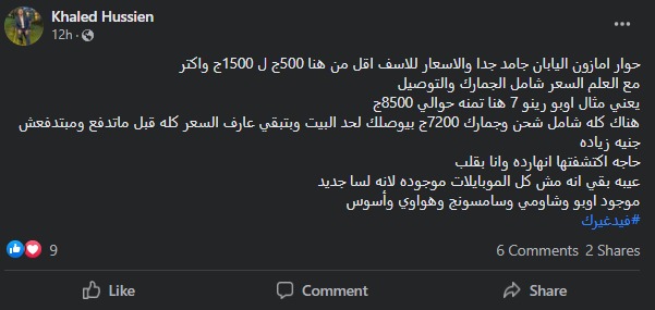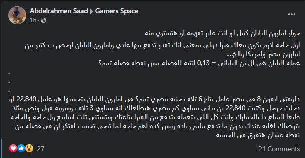 وجاء في منشور: مجموعة من المصريين دخلوا على موقع أمازون اليابان، واشتروا نفس المنتجات اللي موجودة في أمازون مصر، وطبعا بعد ما درسوا إن المنتجات دي بعد الجمارك والضرايب أقل من سعر مصر.