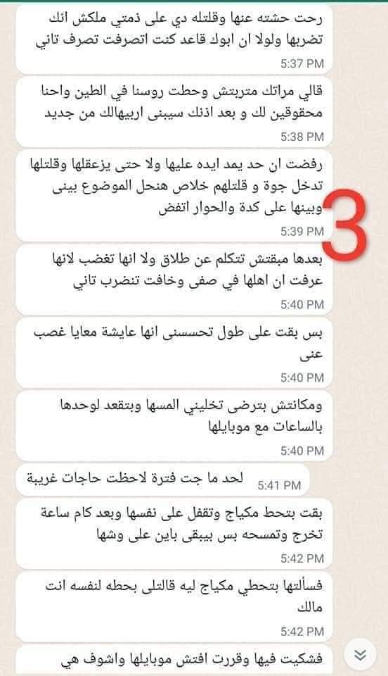 واستطرد المهندس قصته المأساوية: مبقتش تطلب الطلاق خلاص لكن بقت تحسسني إنها عايشة معايا غصب، ومكنتش بترضى تخليني ألمسها، وبتقعد لوحدها بالساعات بموبايلها، لحد ما لاحظت حاجات غريبة، بقت تحط مكياج وتقفل على نفسها واسألها تقولي بحطه لنفسيأنت مالك، فشكيت فيها وقررت أفتش تليفونها، لقيتها مشتركة في جروب ستات وعملت بوستات كتير بتعيب فيا وبتقول مش مكفيها ومش عارفة تتطلق عشان أهلها، والتعليقات كلها كانت: كفريه لحد ما يزهق ويطلقك، وبدأت النصايح المختلفة من نوعية إن واحدة كانت زيها فاتجوزت عرفي على جوزها، واللي تقول كانت تنتقم من جوزها في شرفه.