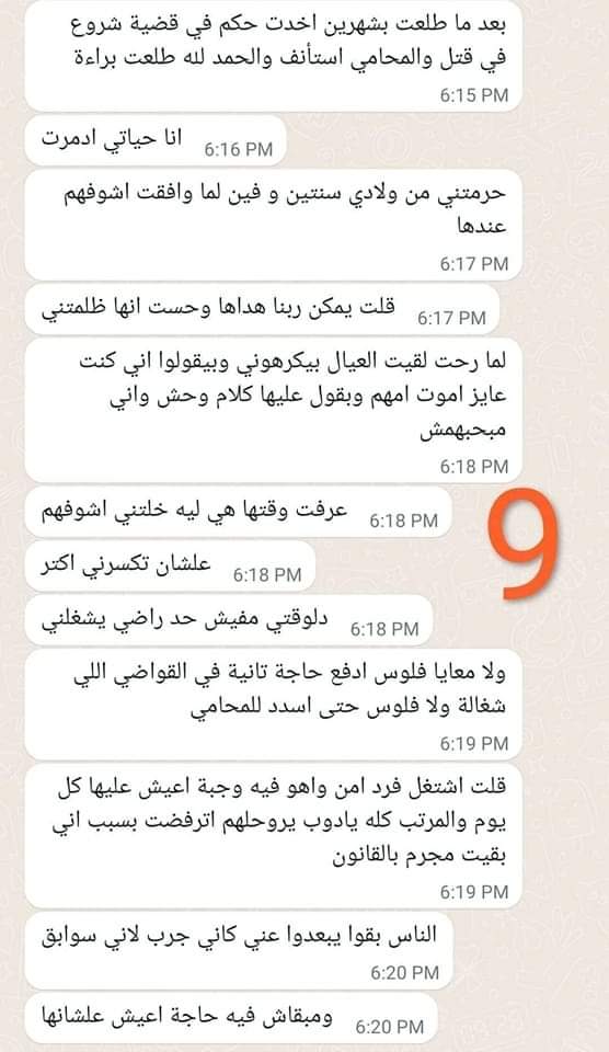 وتابع الشاب: عملولي كمان محضر إثبات حالة بجرح قطعي في دراعها، ورفعت عليا قضية واتطلقت وكمان دعوى تمكين، ده غير إنها بعتت ناس كسروا الباب والعفش وعملت قضية تبديد تانية، اتحبست 6 شهور وبعت اللي ورايا واللي قدامي، شقى عمري راح على التعويضات والمحاكم والقضايا اللي ملهاش آخر، حياتي ادمرت واتحرمت من ولادي ومفيش حد عايز يشغلني لأني سوابق، ومبقاش في حاجة أعيش عشانها.