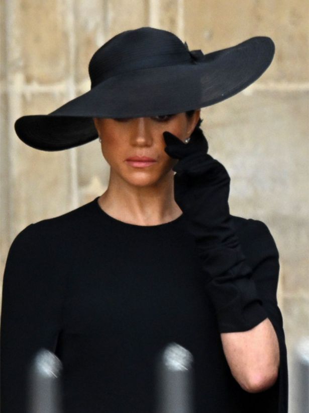كانت ميجان ترتدي قبعة سوداء مع وشاح أسود وفستانًا أسود، وتكافح من أجل البقاء متماسكة عندما بدأت تبكي علانية في آخر مرة تكون فيها صاحبة الجلالة الملكة في عاصمة المملكة المتحدة مرة أخرى.