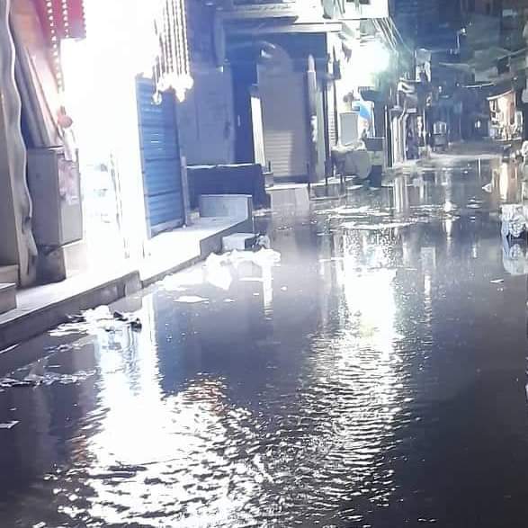 شارع عتريس بكفر الزيات يغرق في المياه بسبب كسر ماسورة.. وتدخل عاجل من محافظ الغربية