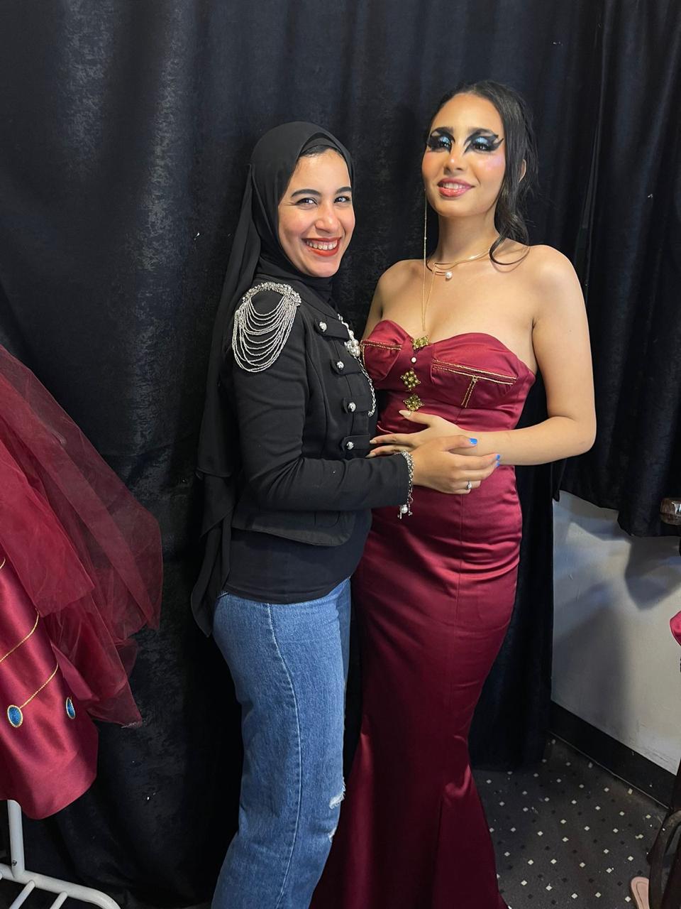 وتوضح يارا: إنجي كانت هي اللي بتصمم الفستان والشكل، لأننا اخترنا كذا شكل في الأول، واستقرينا على ده في الأخر، وأنا كنت بفكر معاها في الجهاز والشكل المظبوط، عشان نقدر نخرج الفكرة صح، ودوري في النهاية أني هلبس الفستان في المسابقة، وأنشره على السوشيال ميديا،عشان الناس تشوف الفكرة.