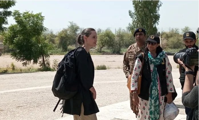 وتحدثت أنجلينا جولي عن المصاعب التي تواجهها بعض المناطق في باكستان قائلة: لم أر قط شيئًا كهذا، وزارت أنجلينا جولي مقاطعة السند الجنوبية المتضررة بشدة، كما التقت بالنازحين الذين يعيشون في المخيمات.