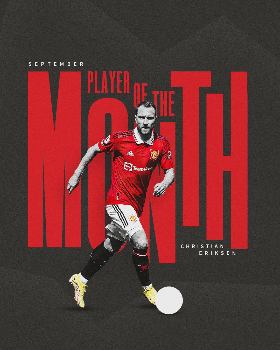 ونشر نادي مانشستر يونايتد عبر حسابه الرسمي على إحدى مواقع التواصل الاجتماعي تويتر، صورة لـ للاعب الدنماركي، وعلق قائلًا: تقديم كريستيان إريكسن بعد فوزه بجائزة أفضل لاعب في شهر سبتمبر داخل مانشستر يونايتد.