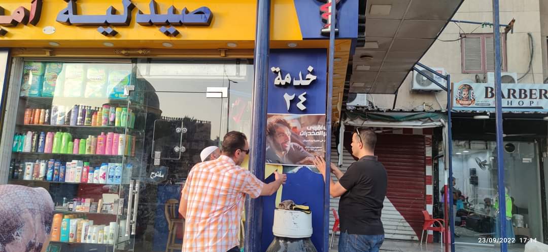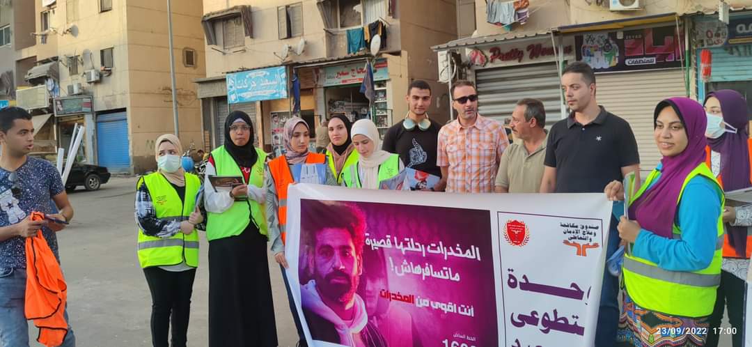 وقامت فرق عمل من شباب المتطوعين بنشر ملصقات الدعاية على واجهات المحلات، والتواصل مع المواطنين في شوارع المنطقة، وأمام مداخل العمارات، وتوزيع منشورات تحث علي البعد عن الإدمان، والمساهمة في تحويل النصائح إلى وعي مجتمعي عام.