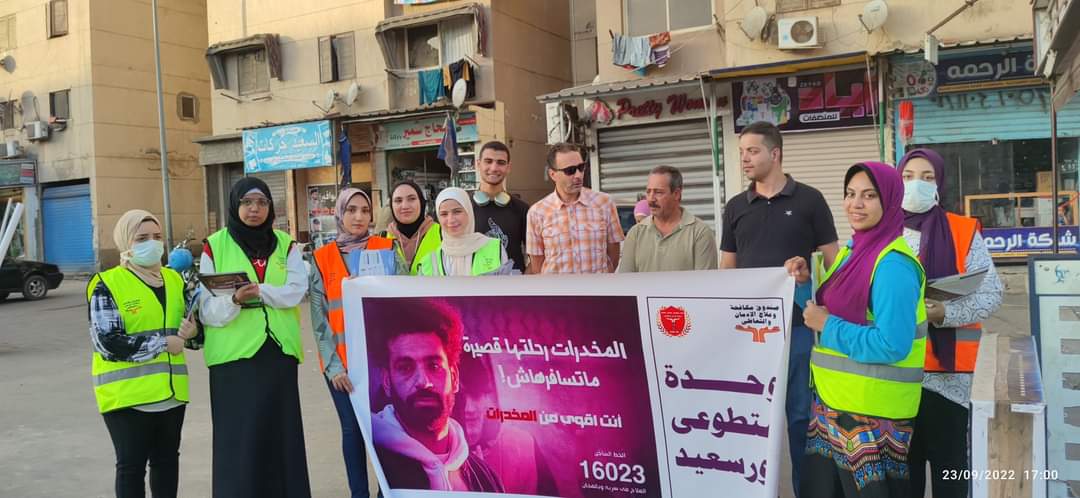 حملة لتوعية أهالي حي الضواحي بـ محافظة بورسعيد بخطورة الإدمان وتعاطى المخدرات