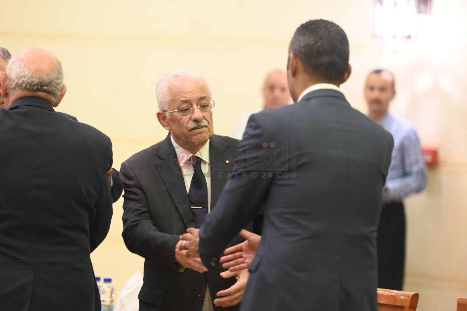 محمود المملوك يؤدي واجب العزاء في وفاة زوجة الدكتور طارق شوقي