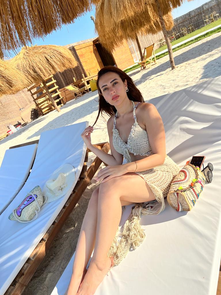 وظهرت كيرا الصباح في الصور التي نشرتها مرتدية كاش مايوه باللون البيج، وتركت شعرها منسدلًا على كتفيها.