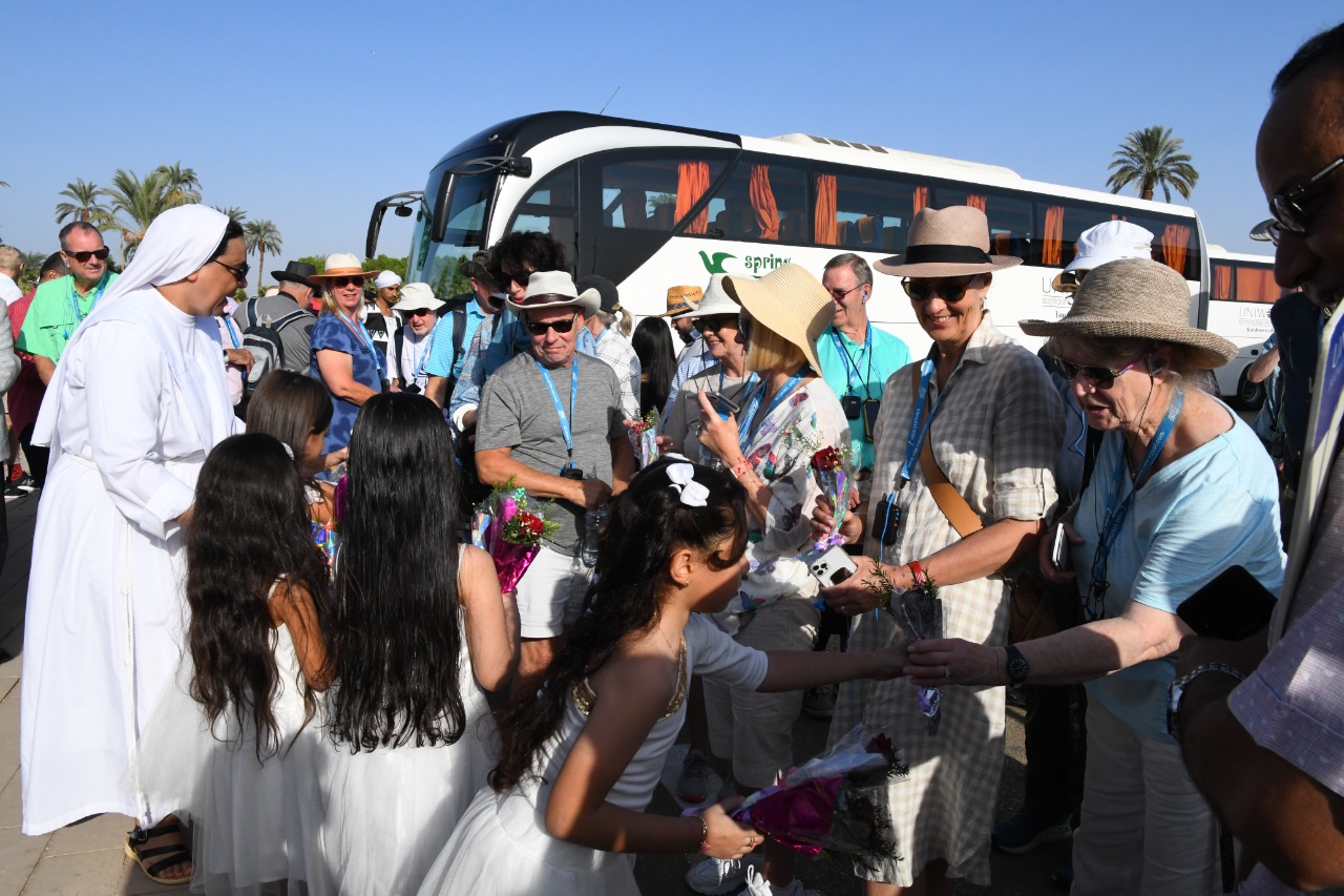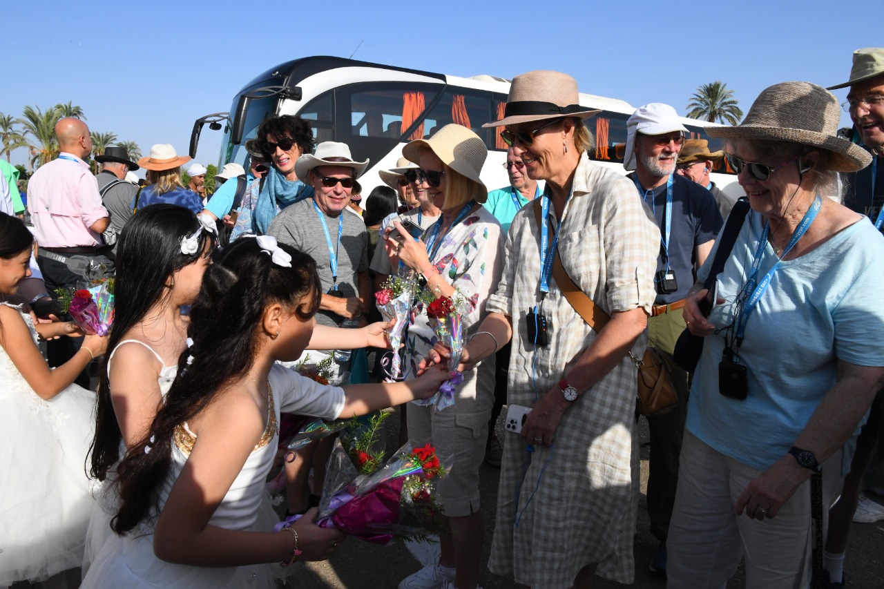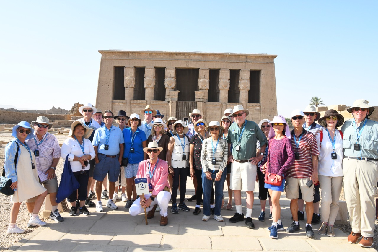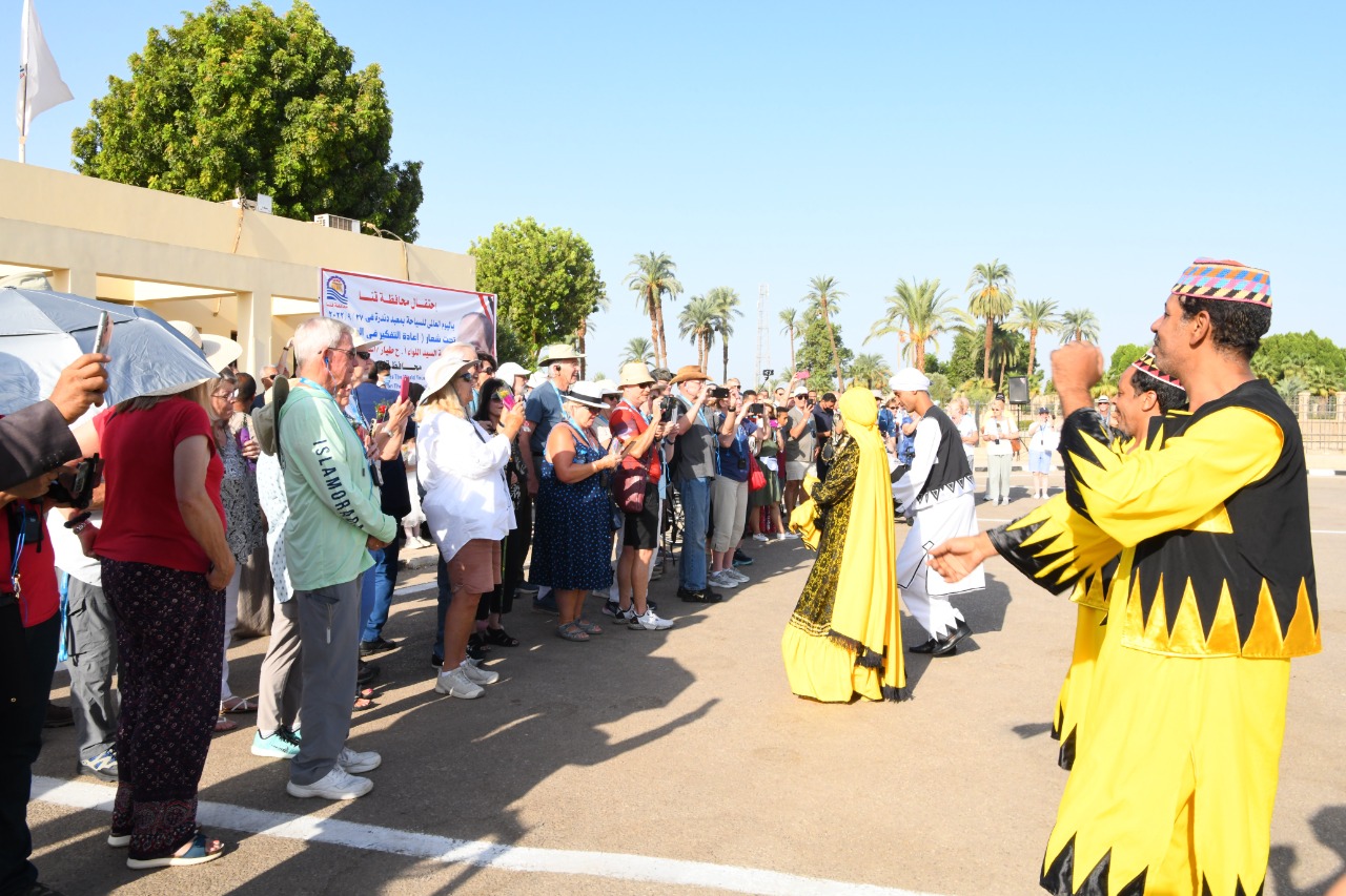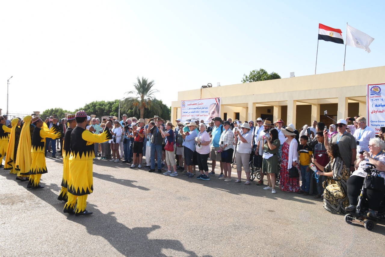 أطفال قنا يقدمون الورود للسياح في معبد دندرة بمناسبة الاحتفال باليوم العالمي للسياحة