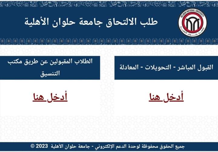 الحدود الدنيا للقبول بكليات جامعة حلوان الأهلية
