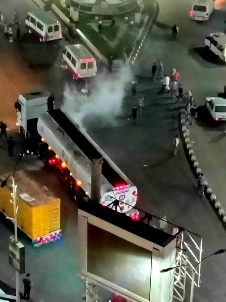 انفجار إطار سيارة نقل وقود في ميدان الصاغة بالزقازيق يثير الذعر | صور