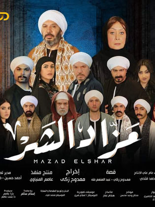 وضم مسلسل مزاد الشر العديد من الفنانين منهم الفنان كمال أبو رية وهالة فاخر ومحمد نجاتي وأحمد جمال سعيد وهاجر الشرنوبي وأحمد عبد الله محمود ومروة عبد المنعم ومراد فكري صادق وكرمي مغاوري وحسن عيد وإيمان رجائي وإنجي خطاب ورضوى شريف وعفاف مصطفى وياسمين رحمي وإبرام سمير، والمسلسل من تأليف أحمد الأباصيري وتحت قيادة المخرج ممدوح زكي.