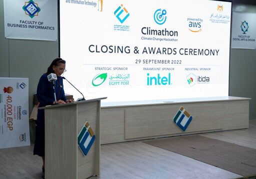 وانعقدت فاعليات Climathon2022 برئاسة الدكتورة أماني عيسى، على مدار أكثر من شهر تحت رعاية وزارتي الاتصالات وتكنولوجيا المعلومات، والتعليم العالي والبحث العلمي، وبالتعاون مع شركة أمازون ويب سيرفس AWS، حيث تبلغ قيمة جوائزها مليون جنيه إضافة للعديد من الجوائز الأخرى التي يقدمها كل من هيئة البريد المصري، شركة انتل، هيئة تنمية صناعة تكنولوجيا المعلومات رعاة Climathon2022.
