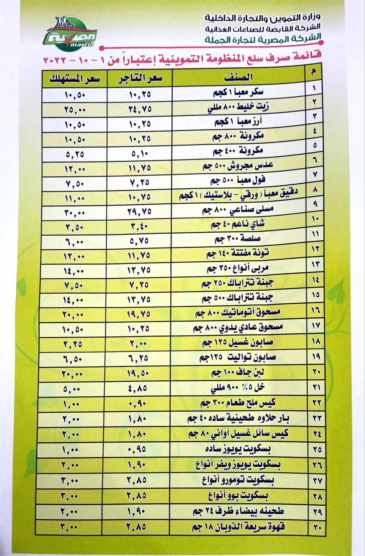 أسعار السلع التموينية لشهر أكتوبر 2022