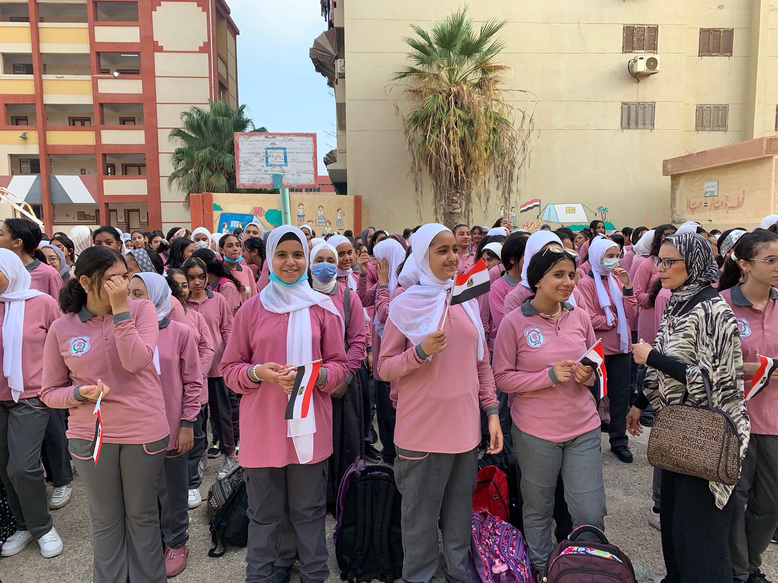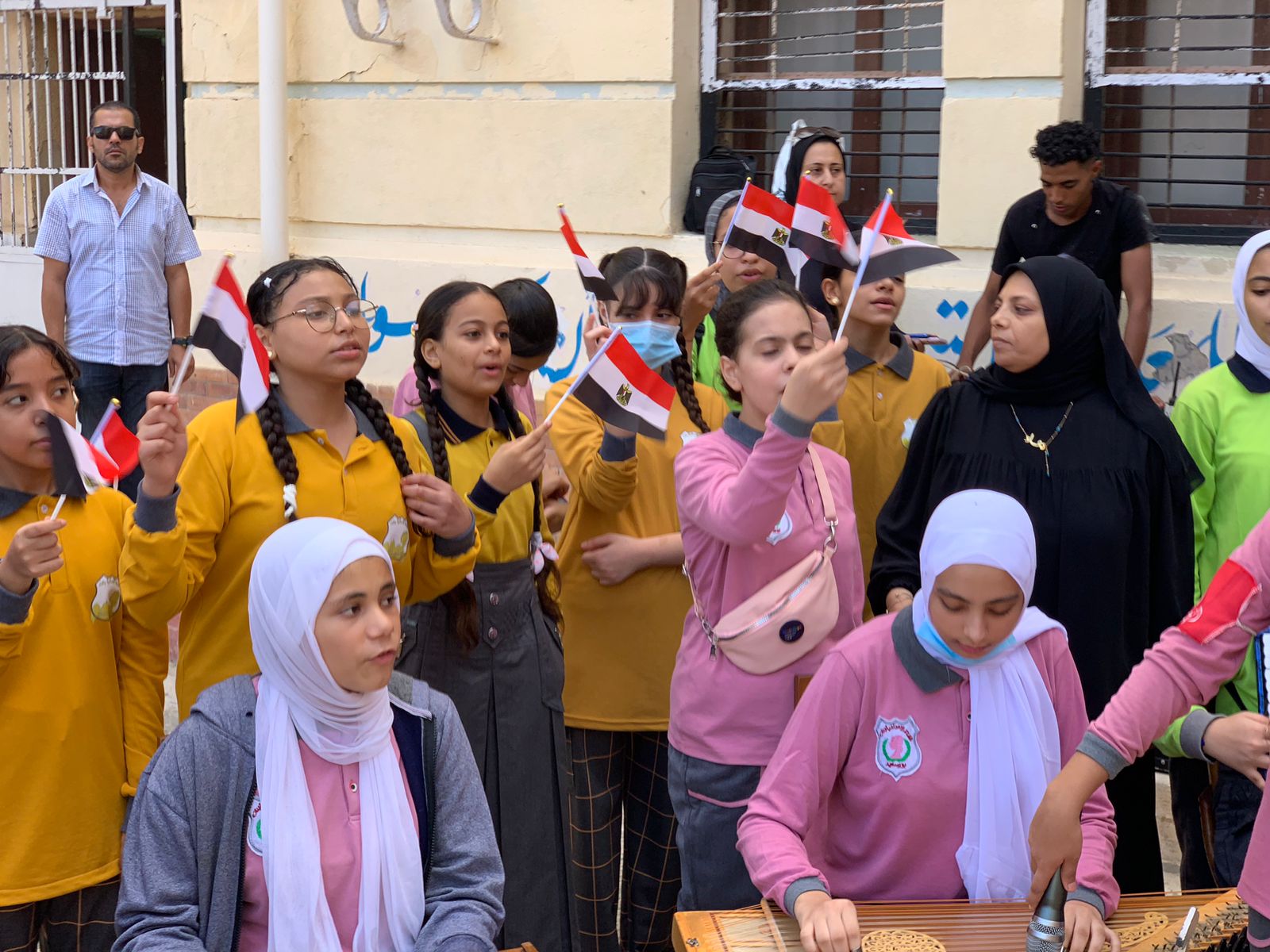 حرص الطلاب والطالبات بمدارس المرحلتين الابتدائية والإعدادية على رفع أعلام مصر خلال طابور الصباح، ورددوا الأغاني الوطنية، وذلك بالتزامن مع بداية العام الدراسي بالمدارس الحكومية.