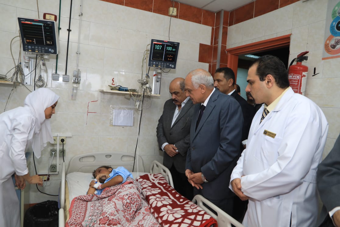 واطمئن المحافظ خلال الزيارة على حالة الطلاب، وتلقيهم للرعاية الصحية اللازمة، مؤكدًا متابعة حالتهم الصحية حتى تمام شفاءهم وعودتهم إلى منازلهم.