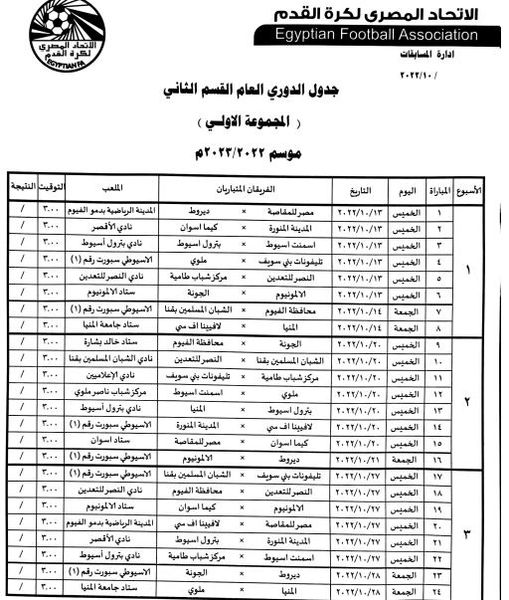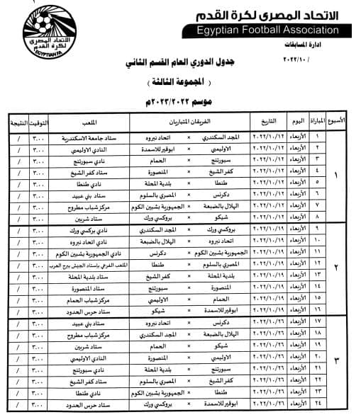 تعرف على جدول مباريات الموسم الجديد بدوري الدرجة الثانية 2022-2023