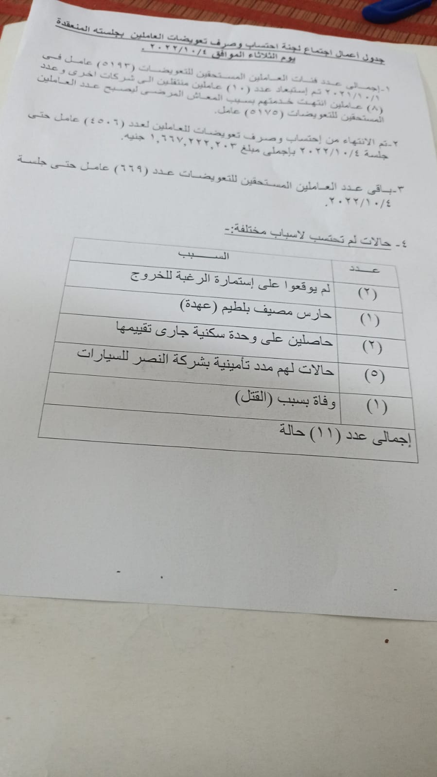 وفي هذا السياق، قال جمال عبد المولي، عضو النقابة العامة للصناعات الهندسية والمعدنية، وعضو لجنة صرف التعويضات، لـ القاهرة 24، إنه تم صرف والانتهاء من احتساب تعويضات للعاملين لعدد 4506 عمال هذا الأسبوع وذلك بأجمالي مبلغ بقدر بنحو 1.667.222.203 جنيه.