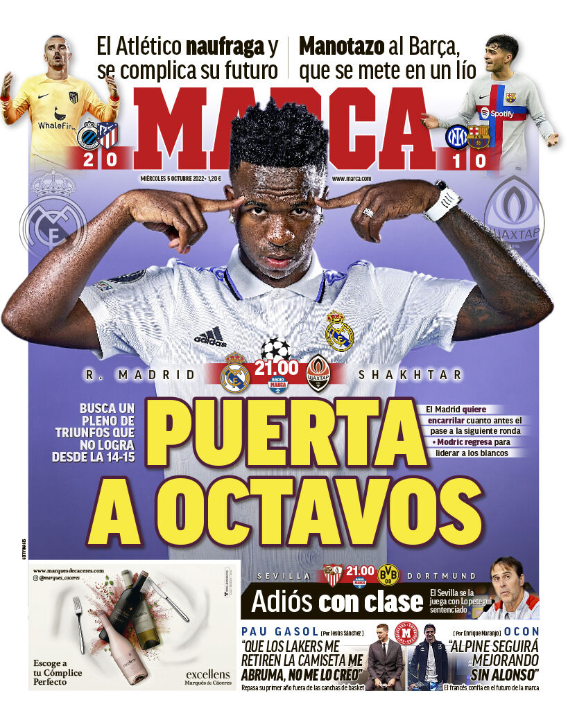 عنونت ماركا في غلافها لعدد اليوم بـ بوابة دور الـ 16، حيث عنونت بـ ريال مدريد يرغب بالذهاب للمسار الصحيح ويضع قدمه في الدور المقبل.