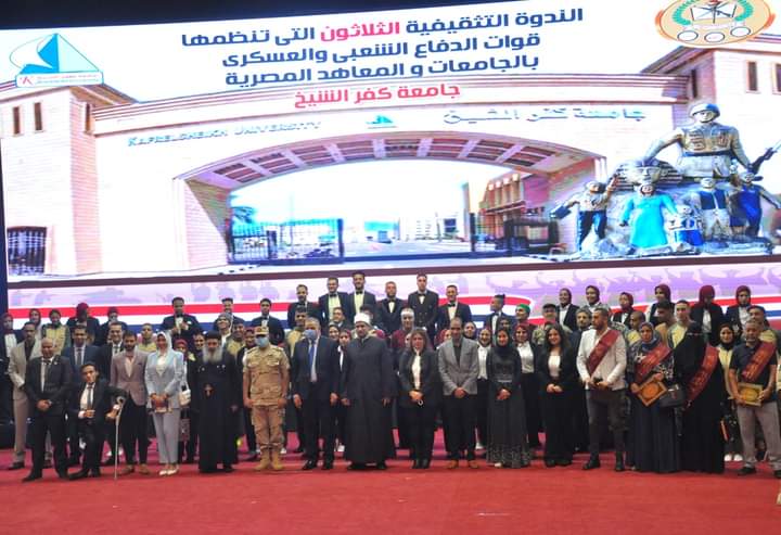 وفى إطار تنمية روح الولاء والانتماء لدى الشباب نظمت قيادة قوات الدفاع الشعبى والعسكرى ندوتين تثقيفيتين بجامعتى ( كفر الشيخ – بنى سويف) تم خلالها إلقاء عدد من المحاضرات التوعوية عن الهوية المصرية والحروب السيبرانية والذكاء الإصطناعى وتأثير الصراعات الحالية على الإقتصاد العالمى والمحلى كذلك أخطار الفكر المتطرف، بالإضافة إلى تقديم الطلبة عددًا من العروض الفنية المتميزة أظهرت دور مصر الرائد فى مكافحة الإرهاب والمشروعات التنموية العملاقة التى تهدف إلى توفير الحياة الكريمة للمواطنين.