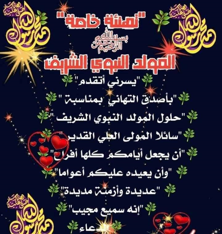تحية للمولد النبوي، وفقكم الله، وفي هذا اليوم تمحى ذنبكم، وأرسل التهاني بعيد الميلاد من قلبي إلى قلبكم.