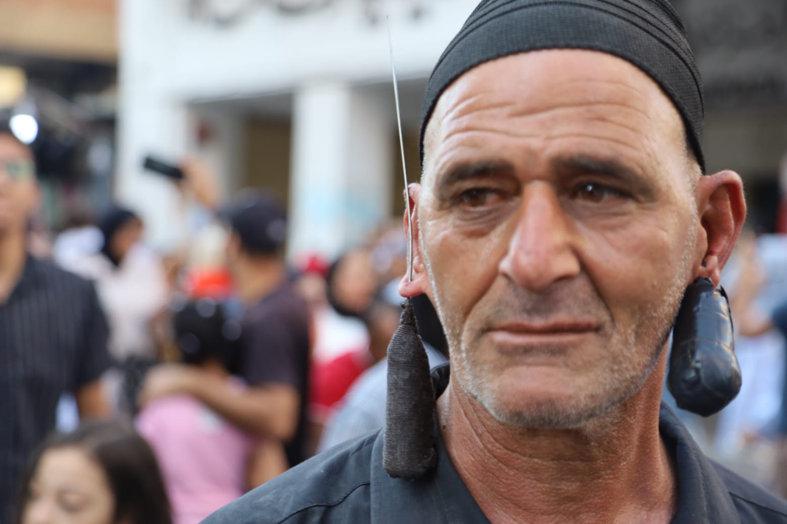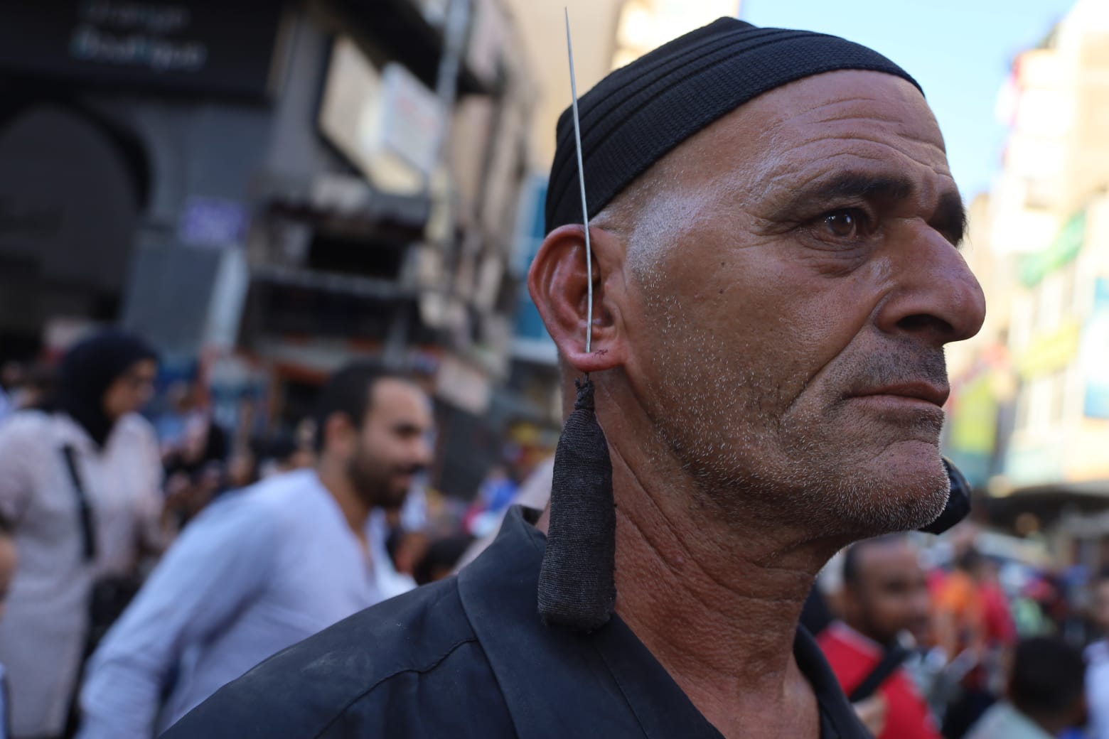 أقدم أحد المشاركين في الموكب المهيب الذي انطلق للاحتفال بالمولد النبوي الشريف بـ محافظة بورسعيد، على وضع سيخ من الحديد في أذنه، وأقدم آخر على إشعال البخور في المسيرة.