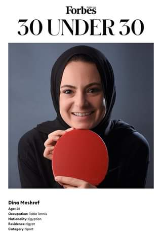 عبرت دينا مشرف لاعبة تنس الطاولة عن سعادتها بعد اختيارها ضمن أفضل 30 شخصية مؤثرة في الشرق الأوسط تحت 30 عاما، من قبل مجلة Forbes الأمريكية.