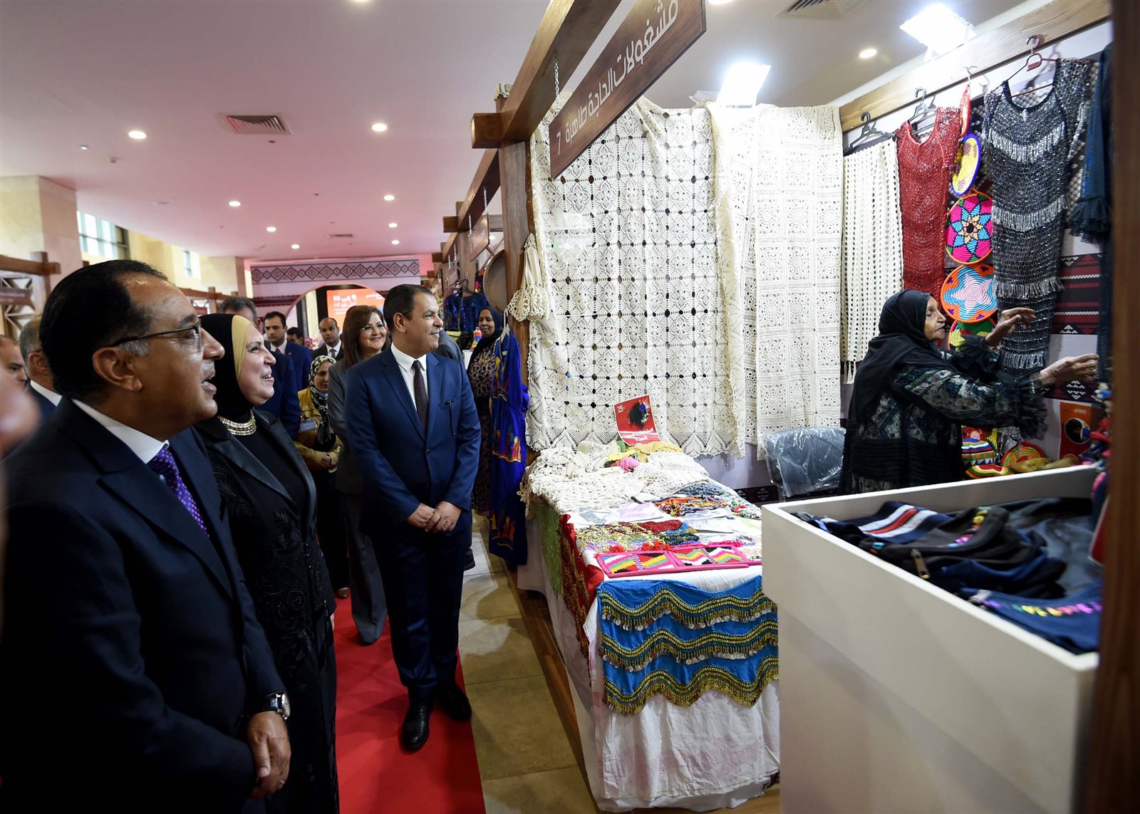 وتفقد مدبولي، معروضات ومنتجات المشروع الخاص بالمساهمة في خلق فرص عمل للمرأة في صعيد مصر، مستمعًا إلى شرح من الوزيرة نيفين جامع، حول جهود جهاز تنمية المشروعات في دعم المشروعات المتوسطة والصغيرة ومتناهية الصغر، وخاصة في صعيد مصر.