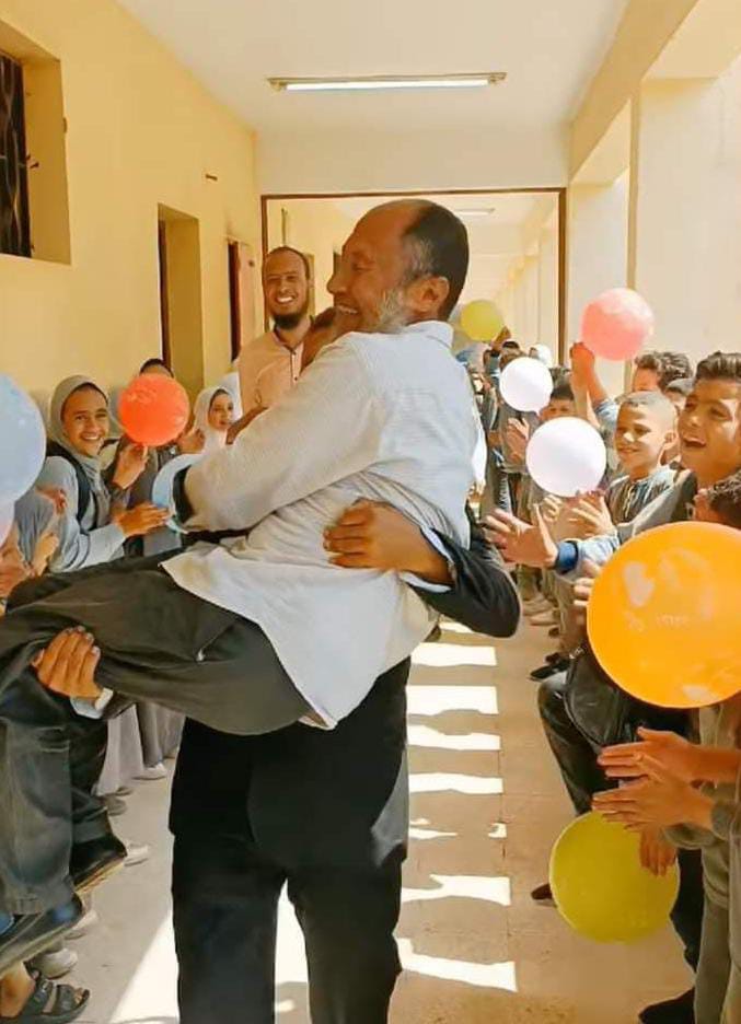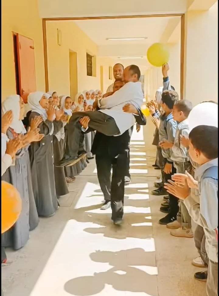وتابع معلم اللغة العربية بـ معهد نزلة الشوبك الابتدائي بمحافظة الجيزة، أنه عندما حمله أحد المعلمين كان يشعر بالفرحة والسعادة، متمنيًا لهم جميعًا النجاح والتفوق سواء الطلاب أو المعلمين.