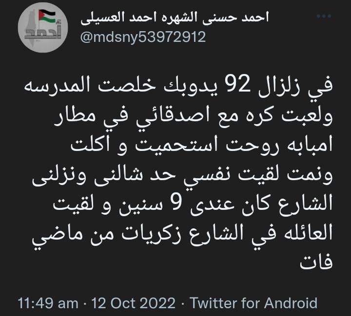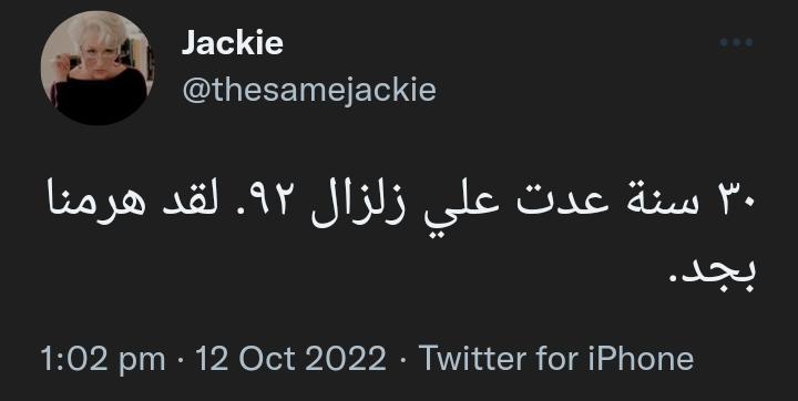 وتفاعل آخر مع هاشتاج الزلزال قائلا: 30 سنة عدوا على زلزال 92، سنين كتيرة فاتت على لحظة كانت من ذكريات الصبا كأنها بالأمس، رحمة الله على من قضى نحبه في الزلزال، ورحمة الله على أحبائنا من كانوا معنا فى تلك اللحظة ونتذكرها بهم وغفر الله لهم ولنا.