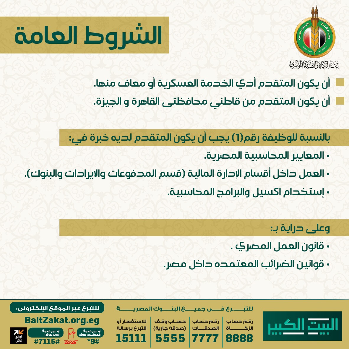 أعلن بيت الزكاة والصدقات تحت إشراف شيخ الأزهر الأستاذ الدكتور أحمد الطيب، عن حاجته لشغل بعض الوظائف الشاغرة في بعض القطاعات.