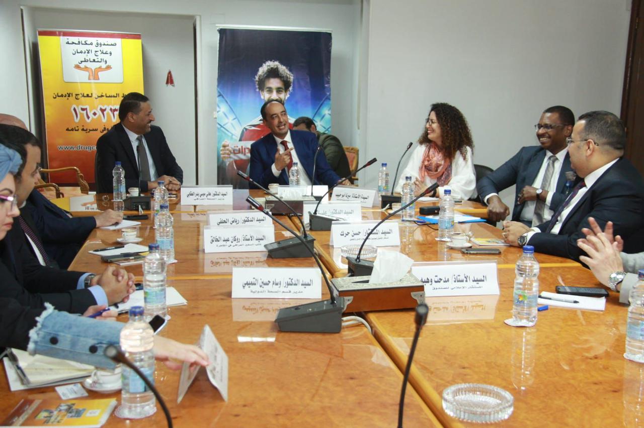 واستعرض الدكتور عمرو عثمان، مساعد وزير التضامن الاجتماعي ومدير صندوق مكافحة وعلاج الإدمان والتعاطي، خلال الزيارة، محاور عمل جهود الصندوق في خفض الطلب على المخدرات، وتضمنت محاور عمل الصندوق الرئيسية والخاصة بالحوكمة وبناء قواعد البيانات والوقاية المبكرة، وعلاج وتأهيل مرضى الإدمان، والدمج الاجتماعي والتمكين الاقتصادي للمتعافين تعزيزا للتعافي ومنع الانتكاسة، ودمج قضية المخدرات في المناهج الدراسية، بجانب الحملات الإعلامية التي ينفذها الصندوق من خلال الشخصيات المؤثرة وأبرزها «أنت أقوى من المخدرات» بمشاركة محمد صلاح مهاجم المنتخب الوطني ونادي ليفربول الإنجليزي.