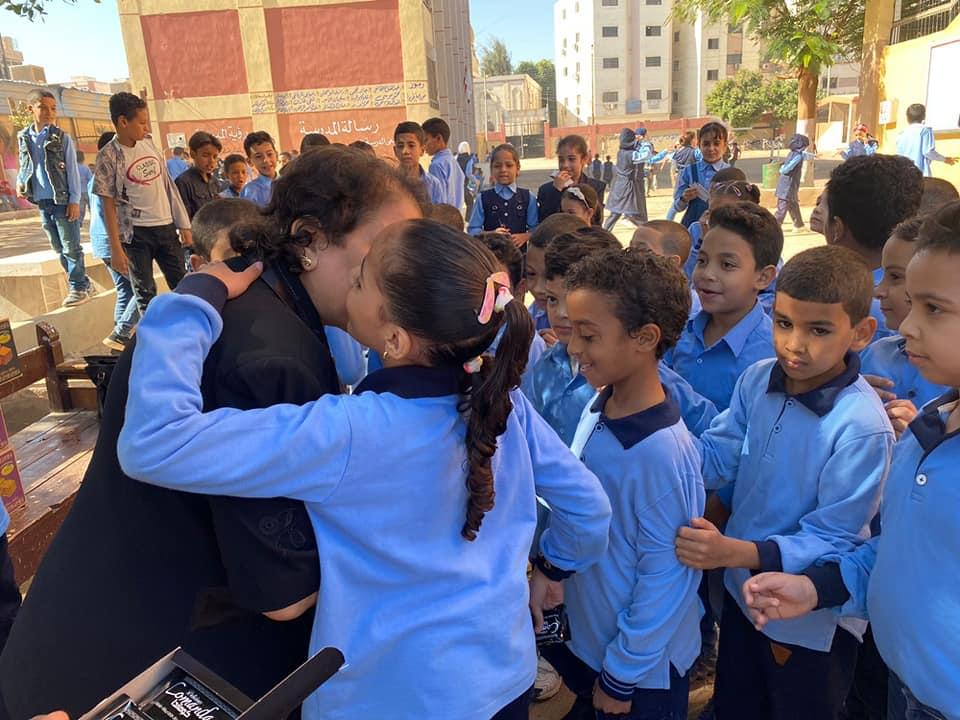 أحضان وقبلات وممر شرفي.. تلاميذ يودعون معلمتهم لبلوغها سن المعاش بقنا | صور