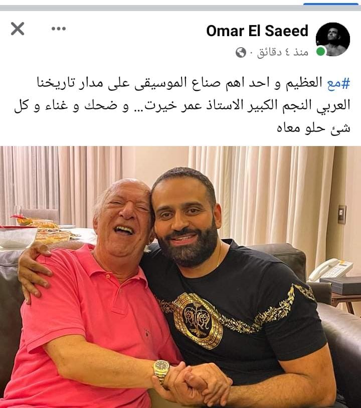 ونشر الفنان عمر السعيد صورة له بصحبة الموسيقار عمر خيرت عبر صفحته الشخصية على موقع التواصل الاجتماعي فيسبوك وعلق عيها قائلا: مع العظيم وأحد أهم صناع الموسيقى على مدار تاريخنا العربي النجم الكبير الأستاذ عمر خير، وضحك وغناء وكل شيء حلو معاه.