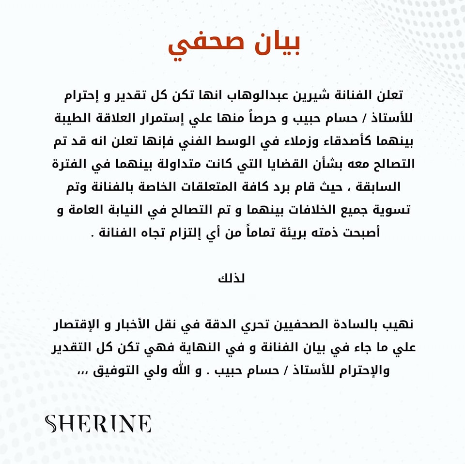 ورغم خلاف شيرين عبد الوهاب وحسام حبيب الذي انتهى بتصالحهما والتنازل عن القضايا، إلا أن حسام حبيب؛ حرص على مساندة طليقته في أزمتها مع شقيقها محمد عبد الوهاب.
