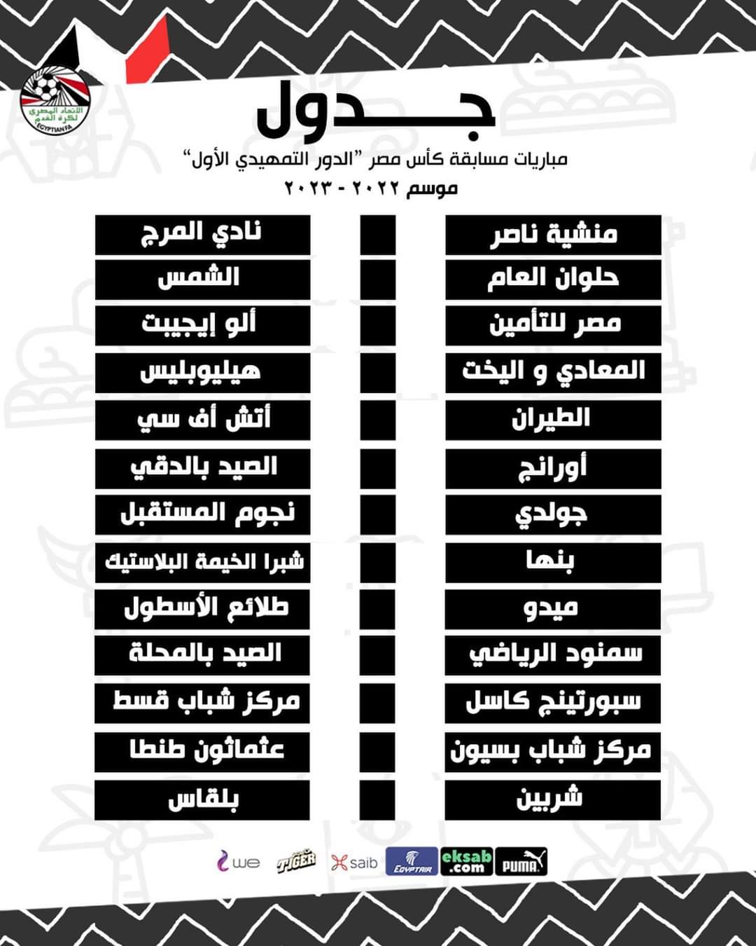 نتيجة قرعة الدور التمهيدي لبطولة كأس مصر